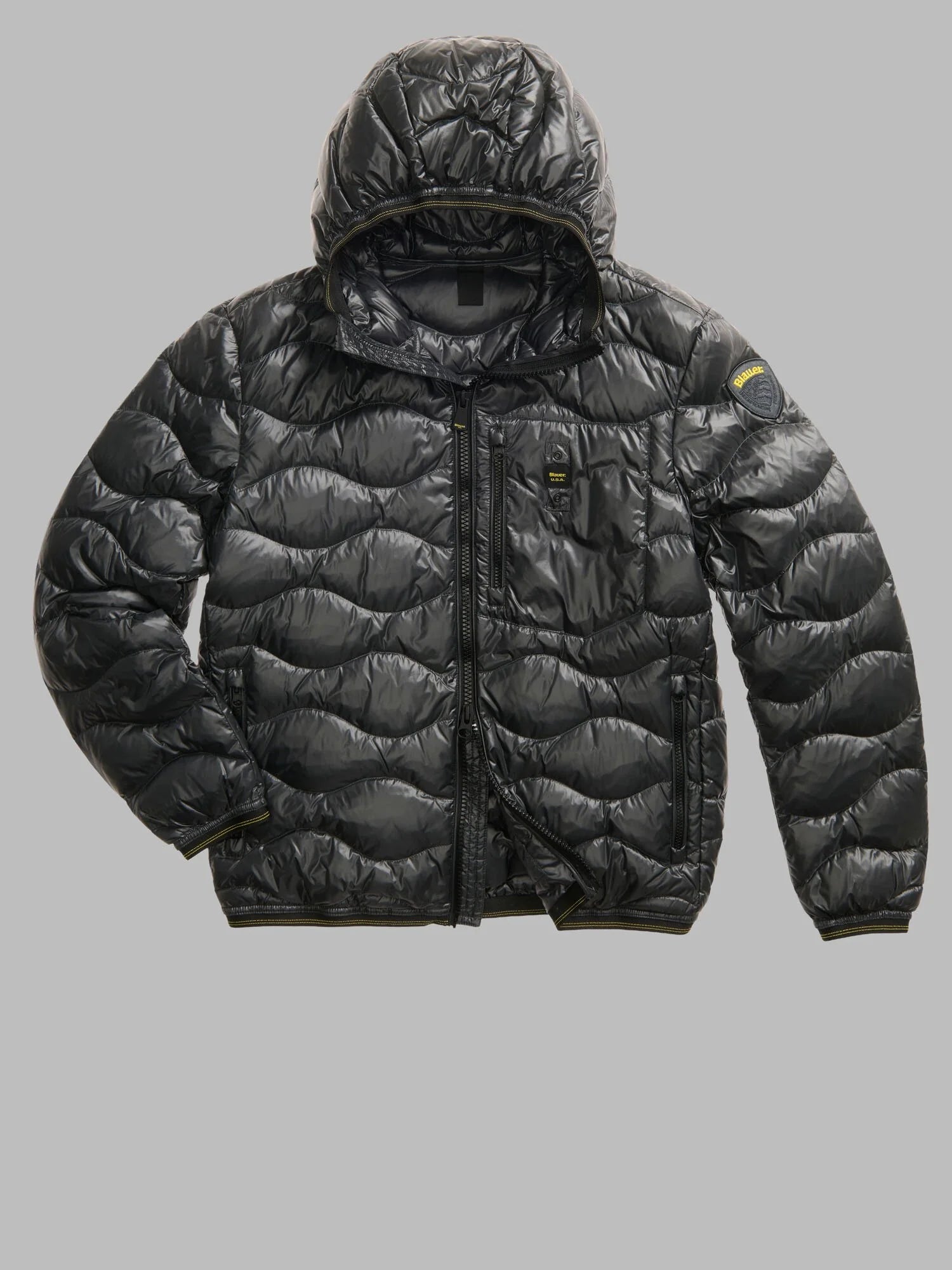 Piumino trapuntato ad onde orizzontali. Taschina applicata sul petto a sinistra per donare al capo iconico Blauer un tocco più funzionale. Imbottitura naturale in piuma, calda e non ingombrante; dedicato a chi vuole essere sempre alla moda in ogni occasione.
